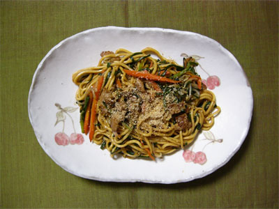 皿にとりわけ、焼き肉のタレをかけていただく。大人はぽん酢で。
