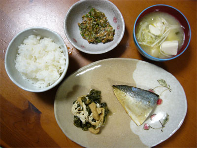ほうれんそうをゆで、3センチの長さに切る。煮大豆(缶詰:生協)とトマトを切って混ぜ合わせる。ドレッシングとマヨネーズで味付け